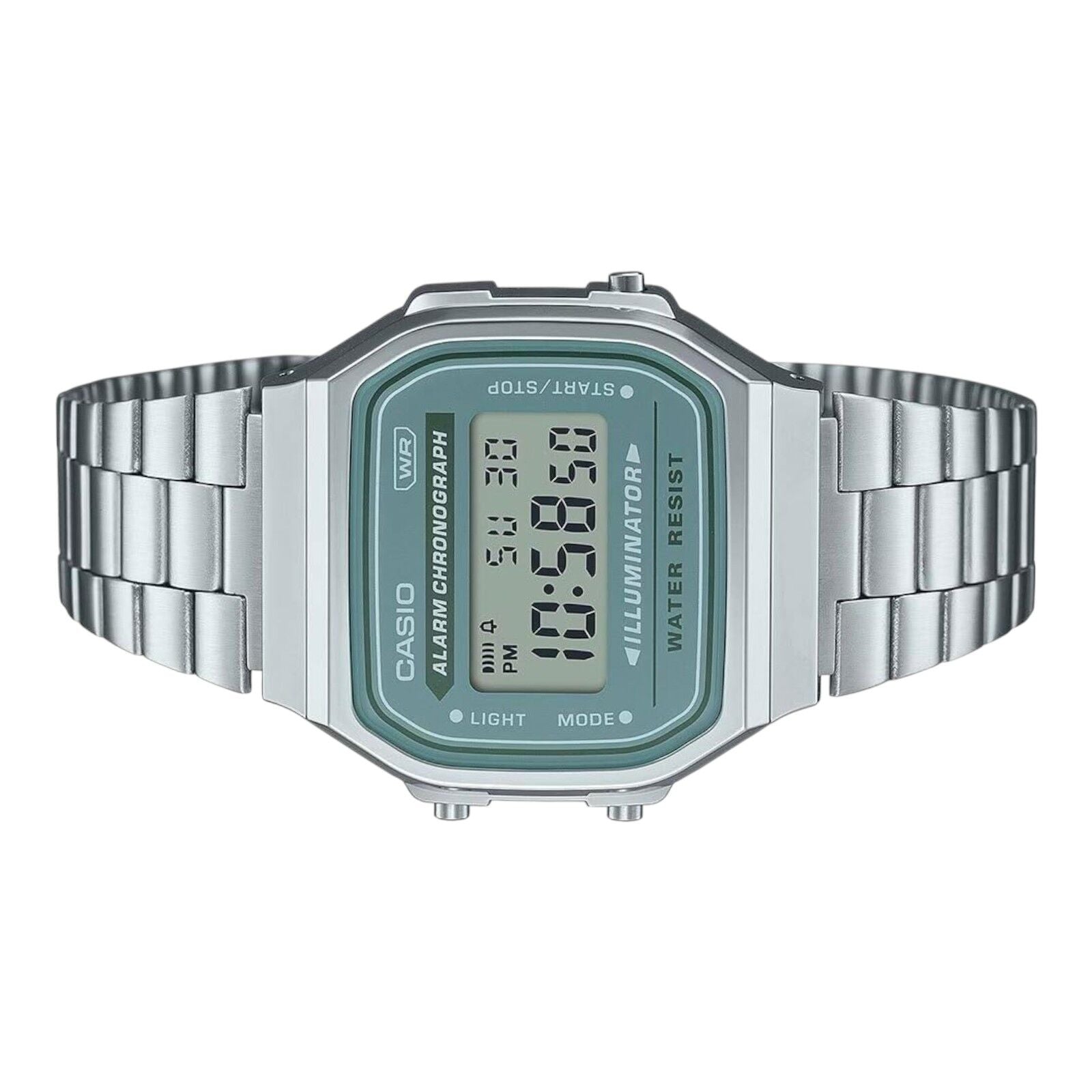 The Casio A168WA-3AYDF pairs a classic square case with a vintage stainless steel band for everyday comfort and style. With its retro digital layout, backlight, and alarm functions, this timepiece offers practical utility in a timeless design.