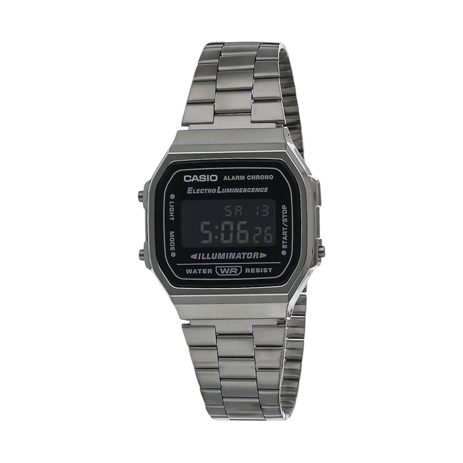 Casio A168WGG-1B Vintage Black Digital Gray Ion Plated Band Unisex Fashion Watch