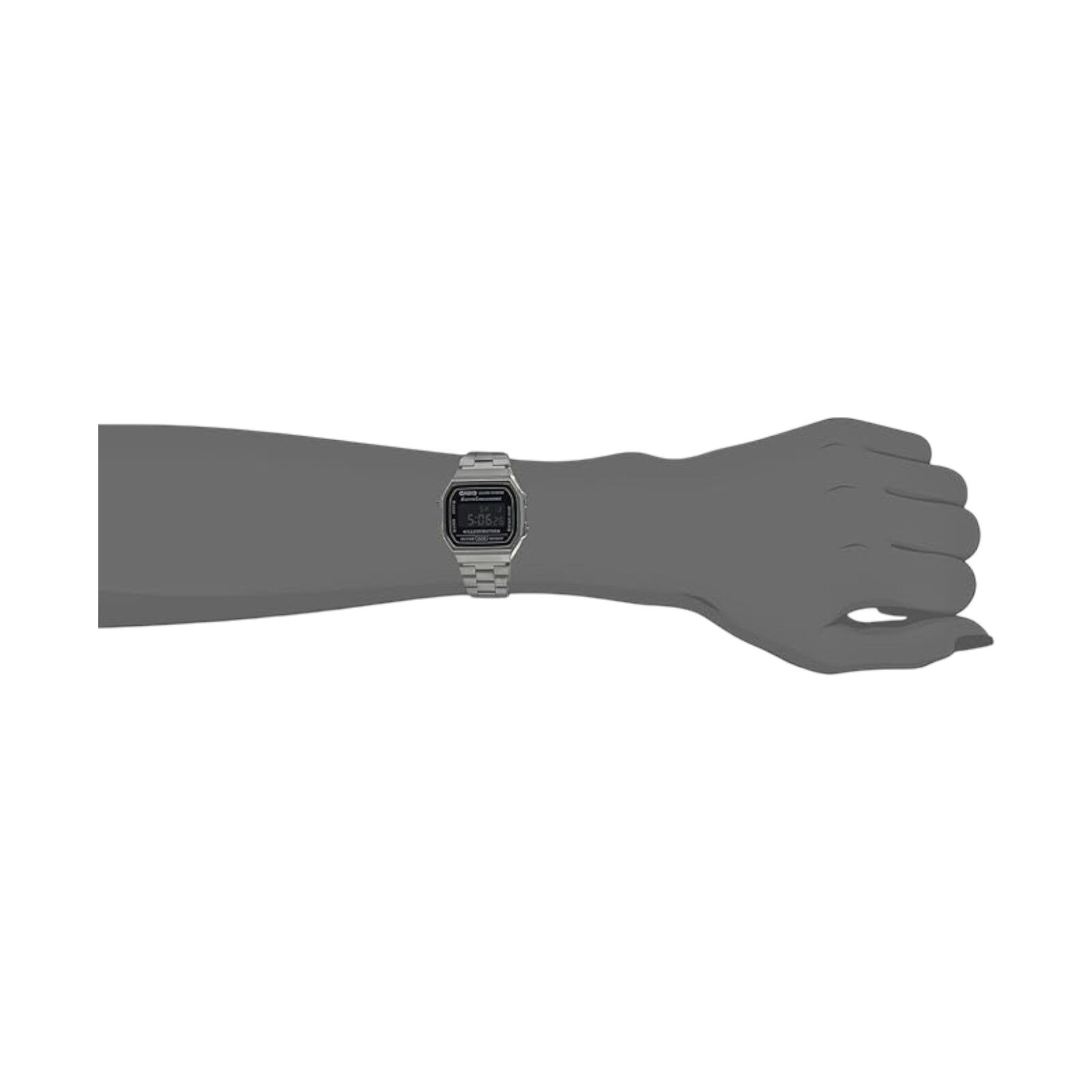 Embrace a touch of vintage flair with the Casio A168WGG-1B, a digital watch that combines timeless style with contemporary functionality. This unisex watch boasts a sleek, black digital display and a robust stainless steel band with a gray ion-plated finish, making it a versatile accessory for any outfit and occasion.