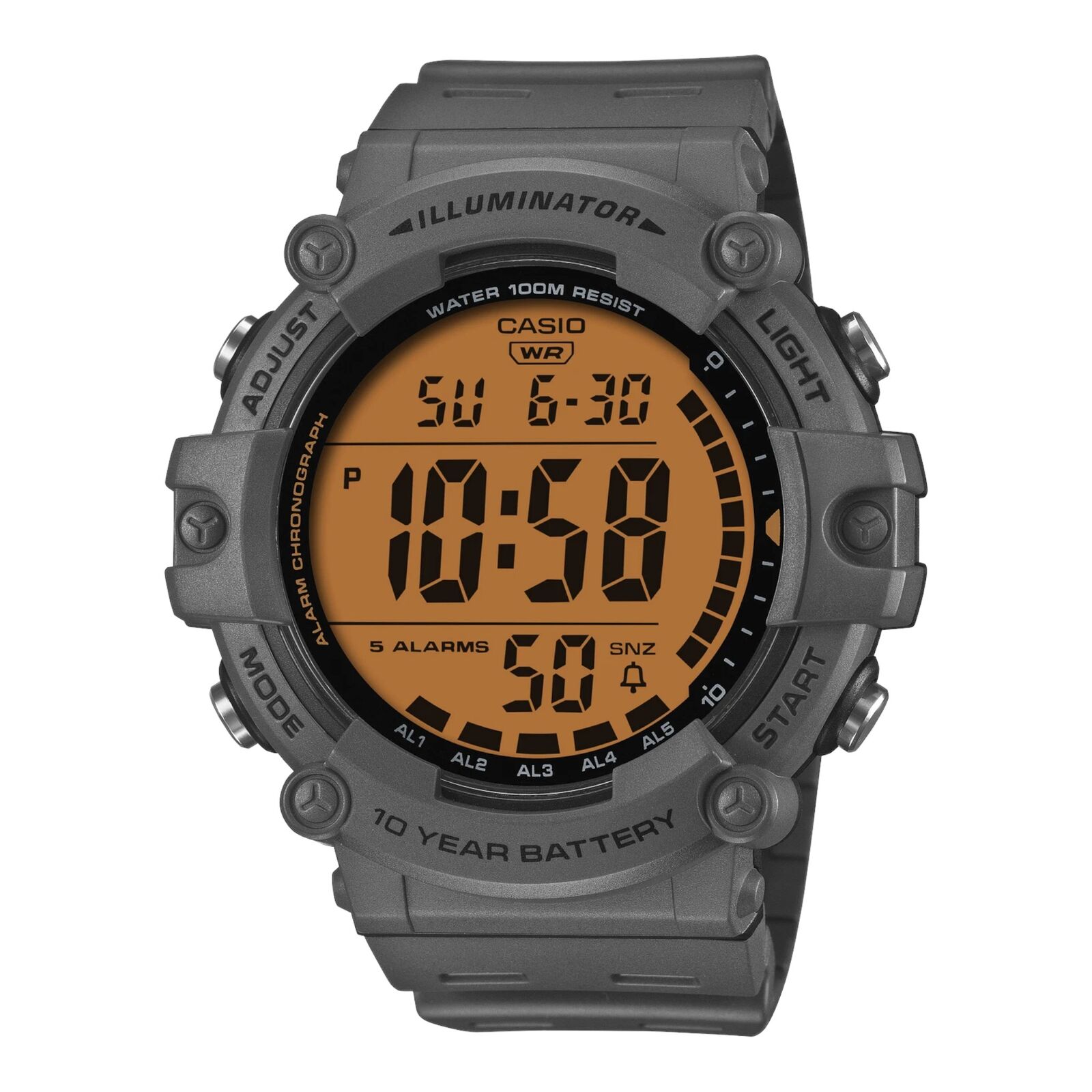Casio AE-1500WHC-8AV Mens Digital Watch Grey Resin Band Dual Time LED 100m
