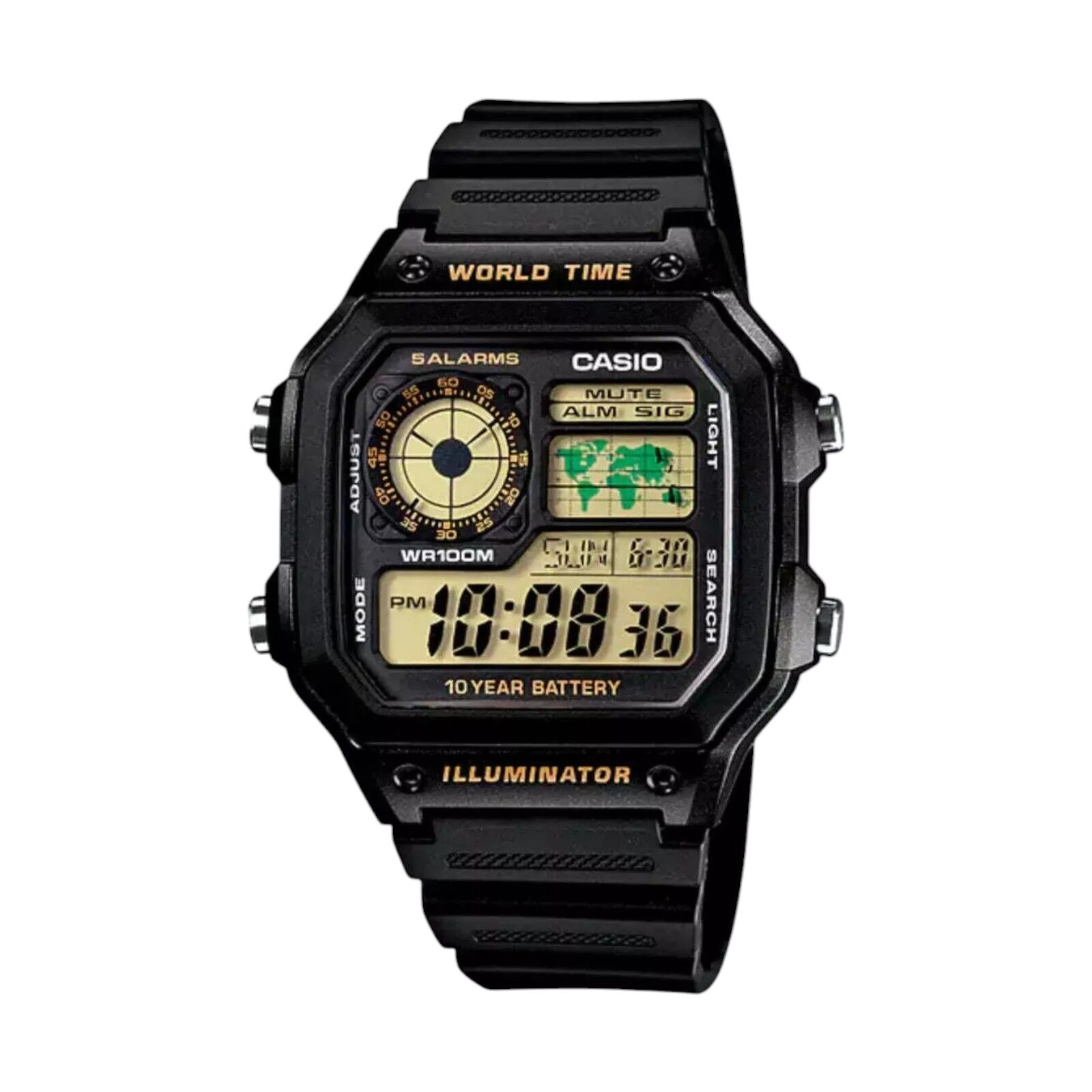 Casio Digital World Map World Time Alarm Illuminator AE-1200WH-1BVDF Mens Watch