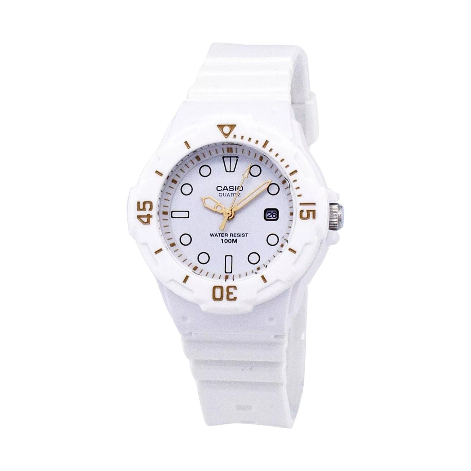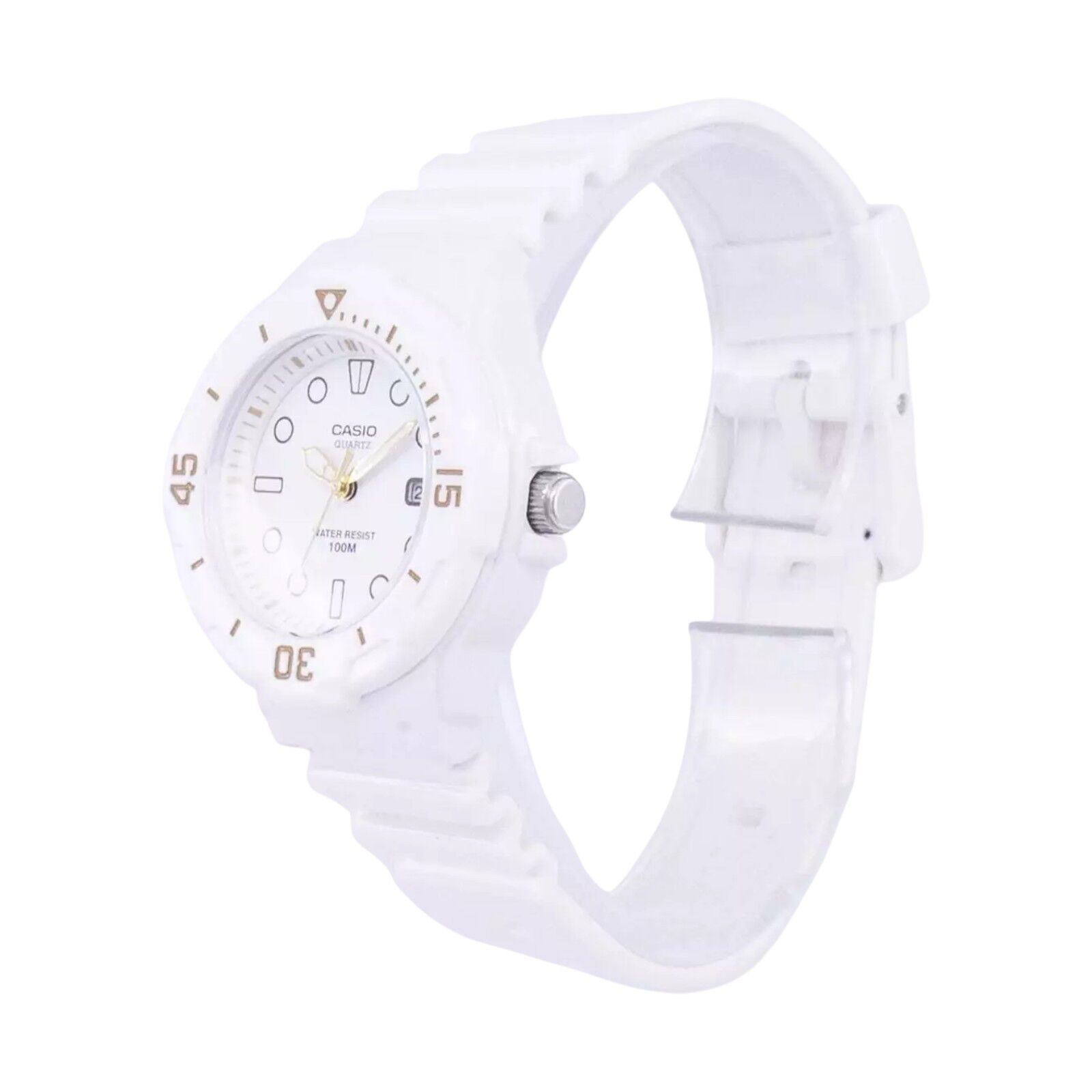 • White dial with bold hour markers for clear visibility