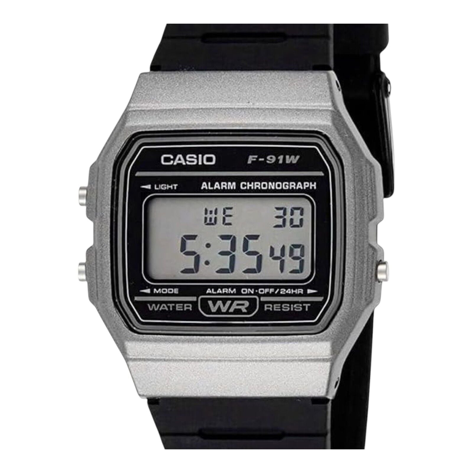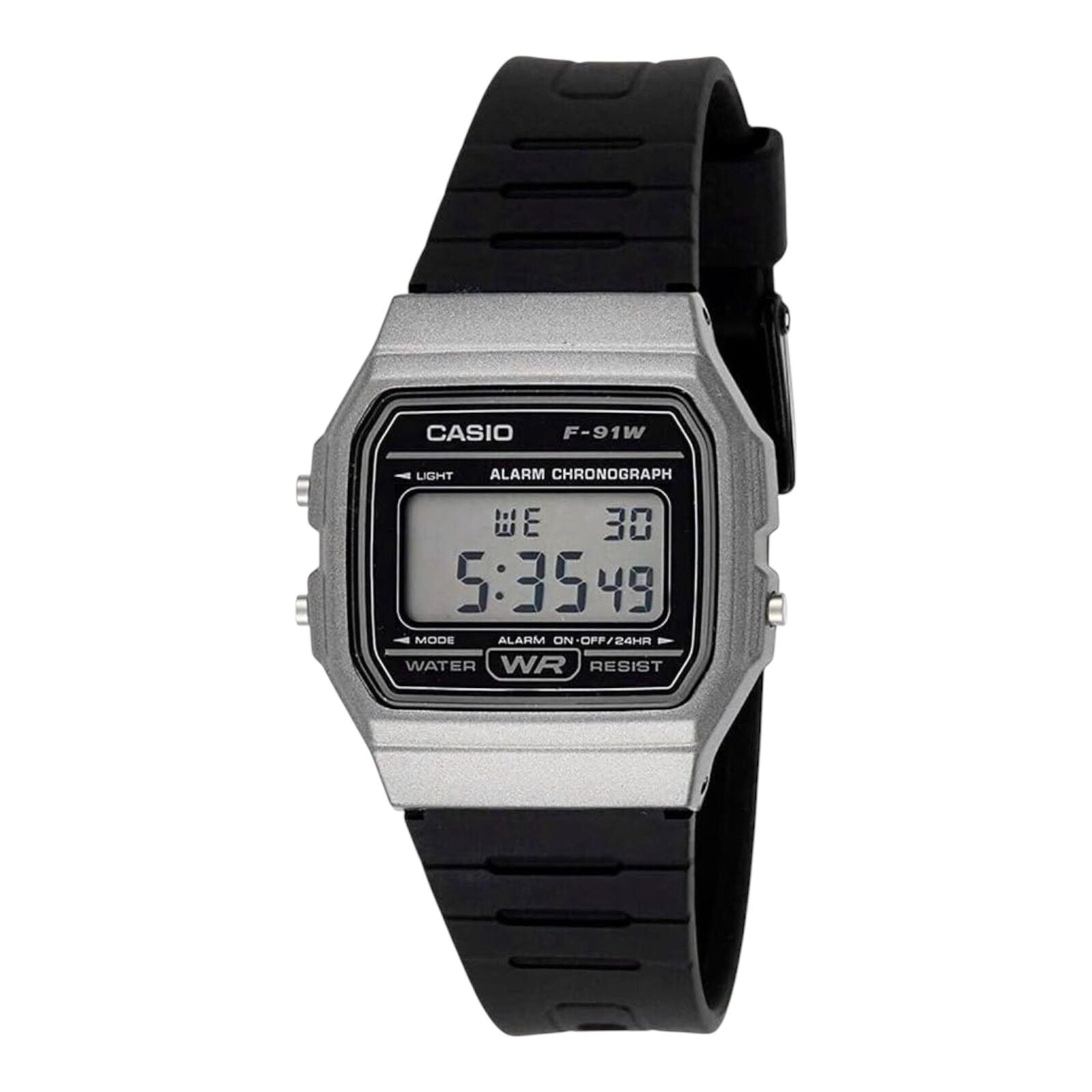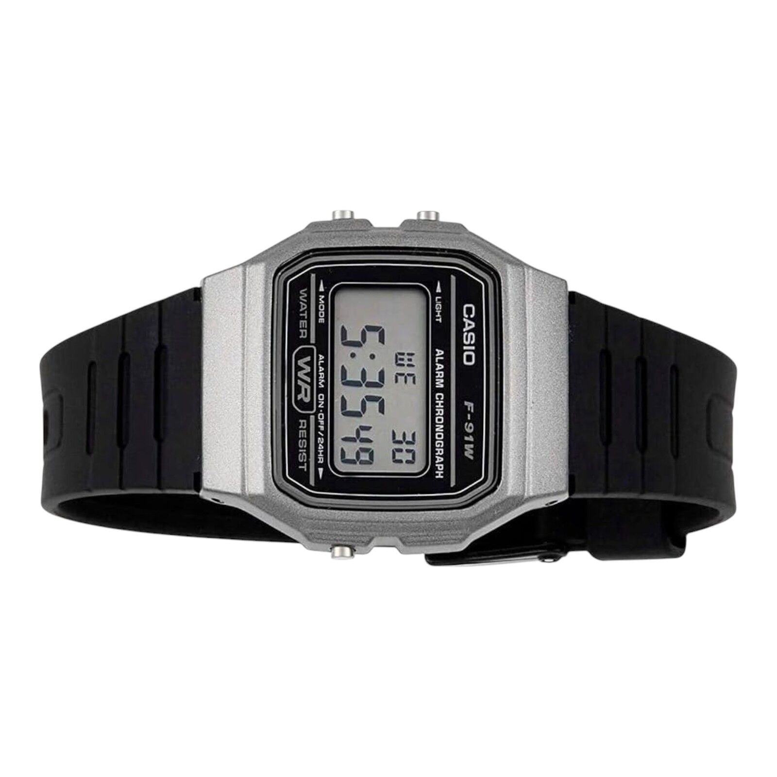 Casio F-91WM-1BDF Silver Case Black Resin Digital Watch LED Alarm Unisex