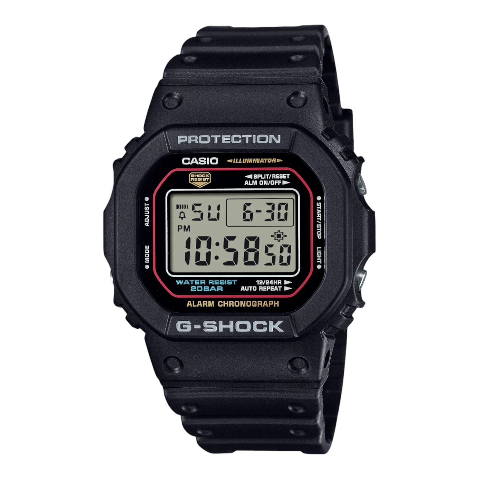The Casio DW5600RL-1 pays tribute to the original G-SHOCK with a bold retro design. Featuring signature G-SHOCK colours—red for passion, blue for water resistance, and yellow for shock durability—this unisex watch combines toughness with classic appeal. Made from bio-based resin and equipped with essential digital functions, it’s ready for everyday wear or adventure.