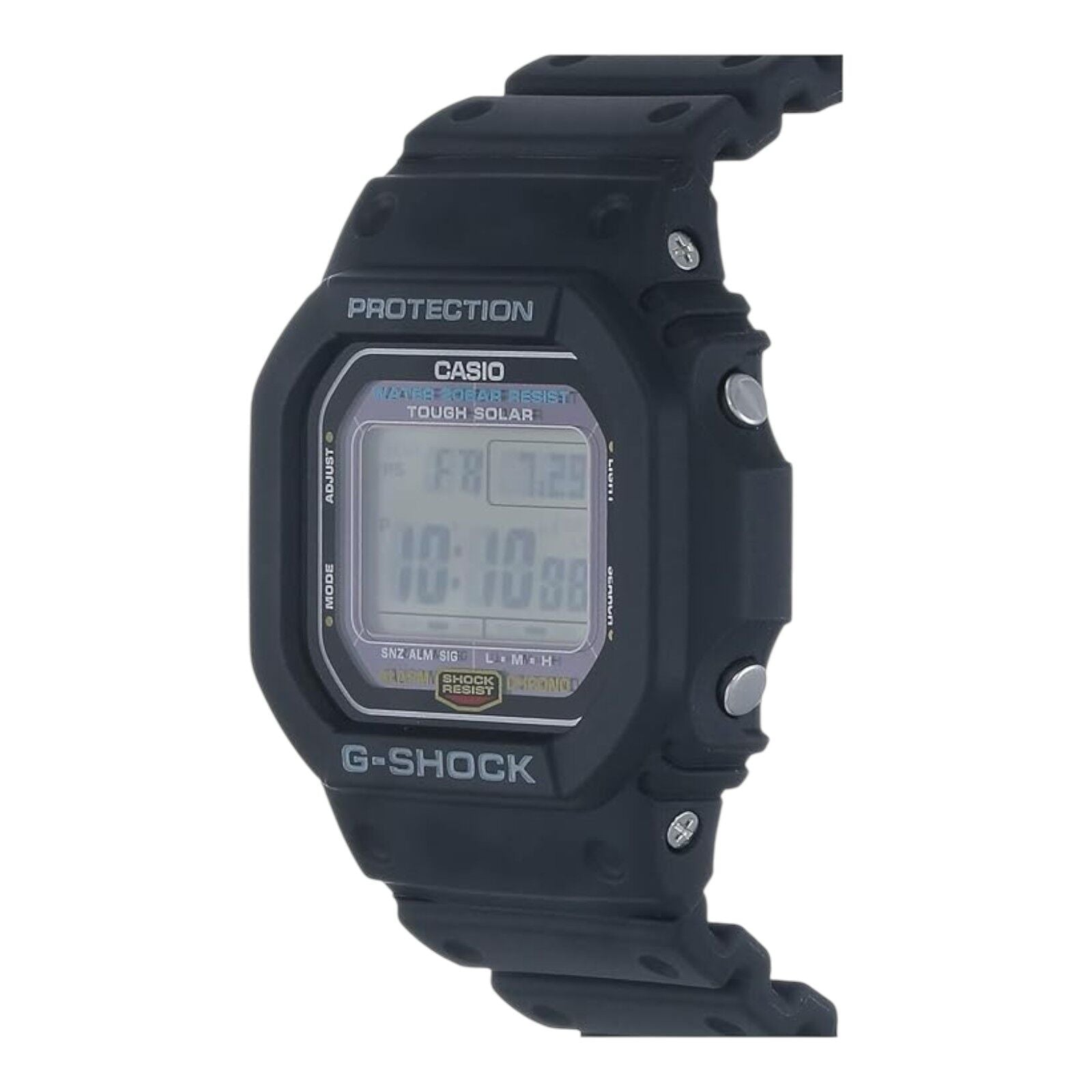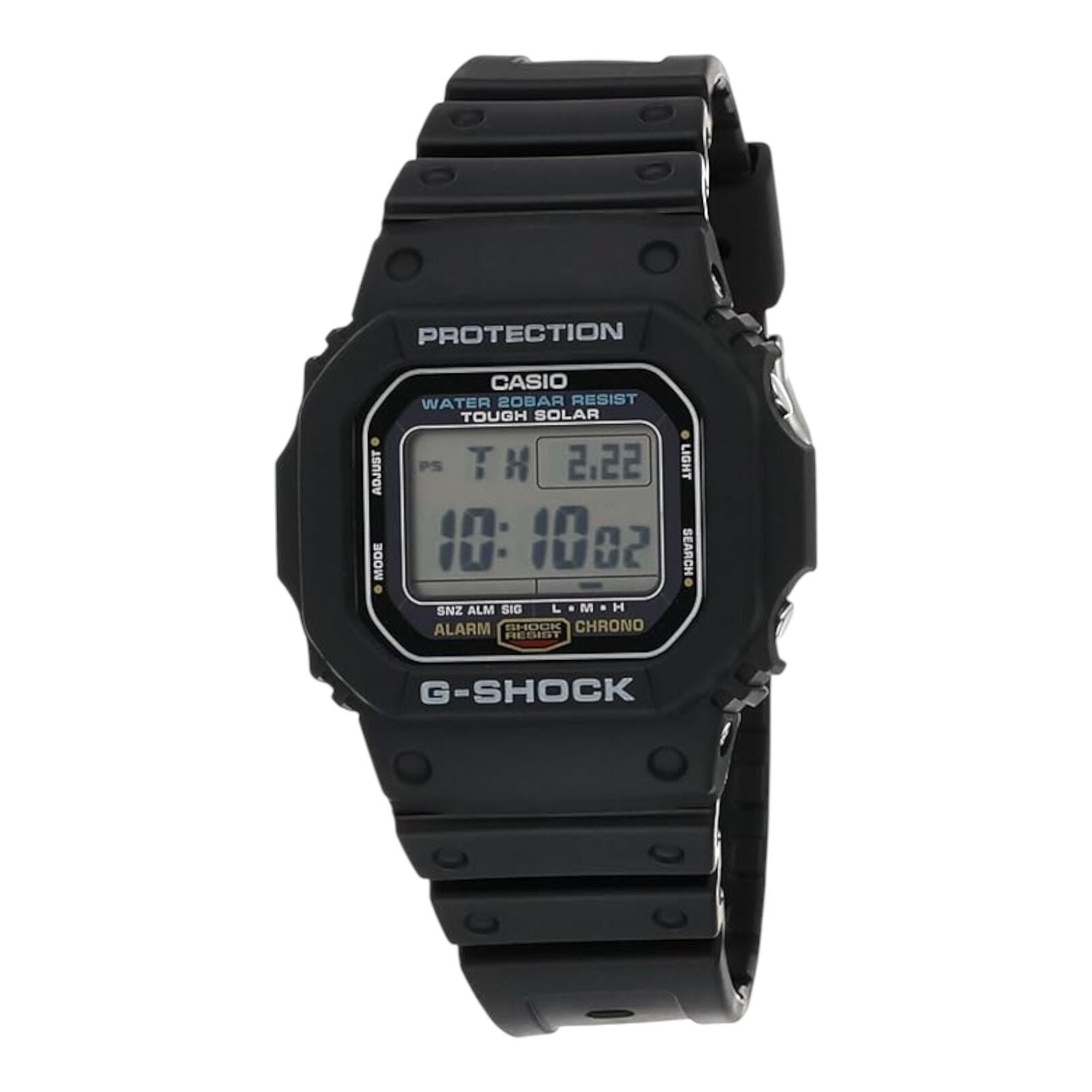 The G-5600UE-1DR revives the original G-Shock square in a compact, street-ready design powered by Tough Solar. Built for long-lasting function and everyday practicality, this model blends efficient solar charging with full digital performance in a classic form factor.