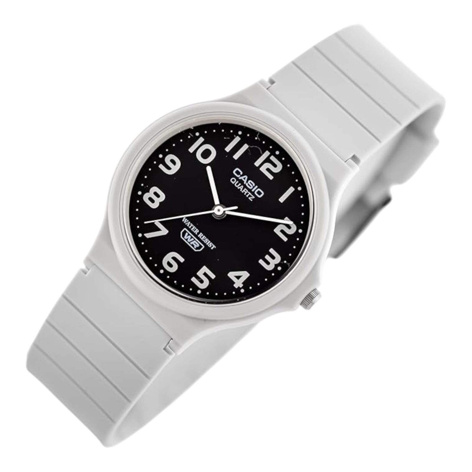 Casio MQ-24UC-8B Unisex Analog Watch Black Dial White Strap Water Resistant