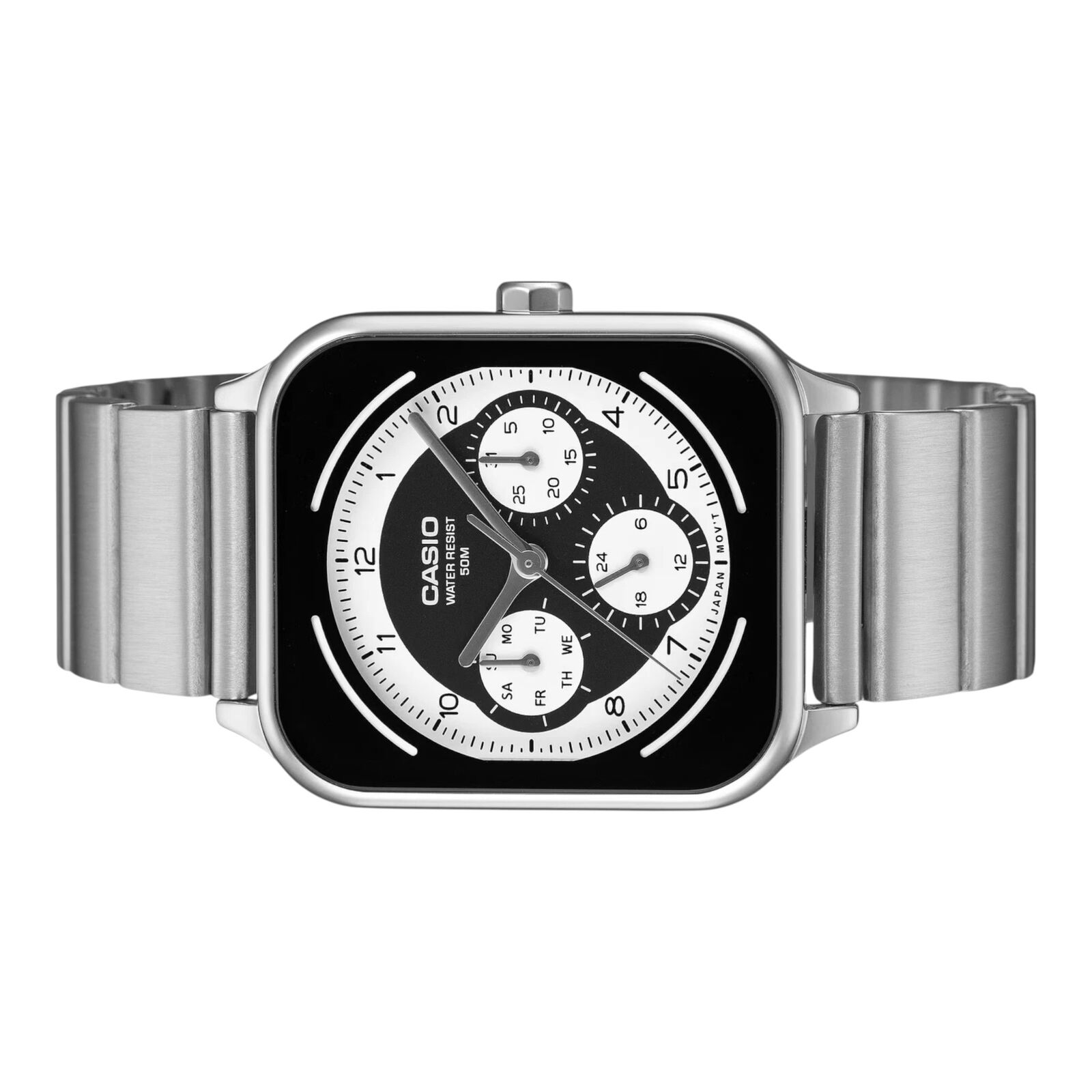 The Casio MTP-M307D-1BV blends classic form with modern function. Featuring a black dial with three inset subdials for day, date, and 24-hour time, this watch is perfect for men who appreciate a clean, professional style with added utility. Water resistance and a stainless steel band make it suitable for daily wear.