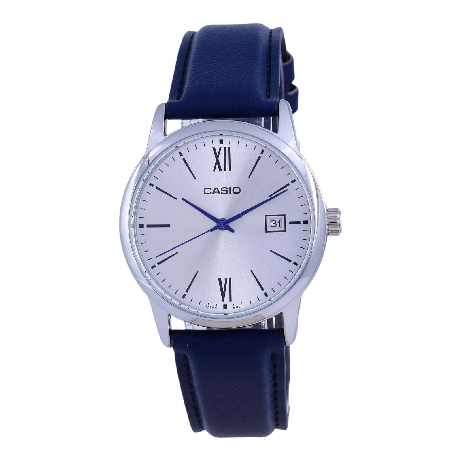 Casio MTP-V002L-2B3 Men's Blue Leather Band Roman Silver Dial Date Watch