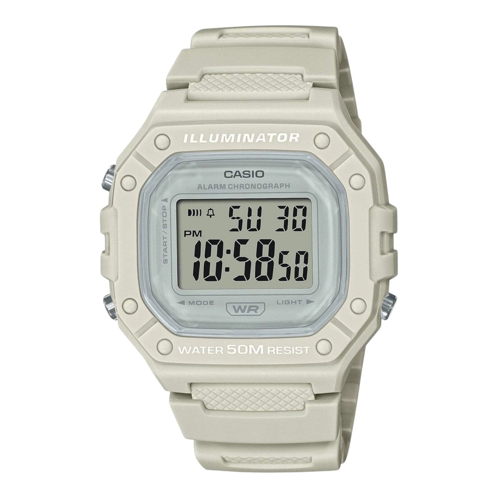 Casio W-218HC-8A White Dial White Resin Band LED Alarm Stopwatch Digital Watch