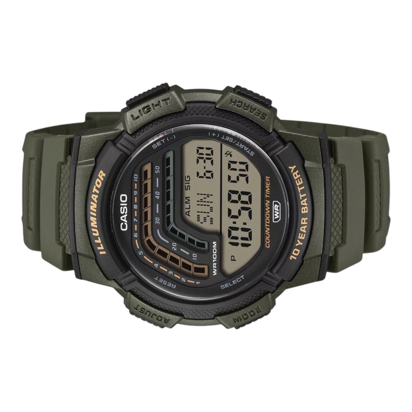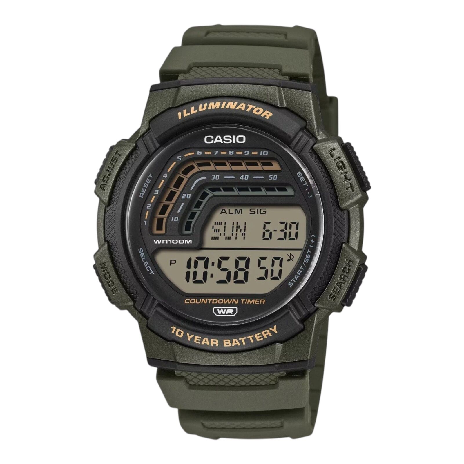 Casio WS-1800-3AV Mens Digital Watch Green Resin Band 100m Countdown Timer